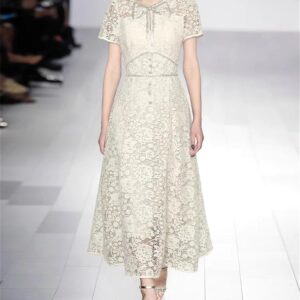 Women Lace Dress Short Sleeve Crystal Beading Hollow Out Elegant Gorgeous Evening Look