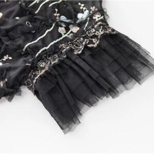 - Romantic Floral Embroidery: Delicate black fabric adorned with intricate floral detailing creates a timeless, feminine look for special occasions.