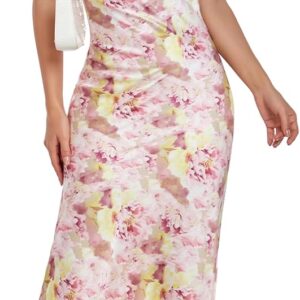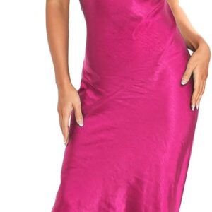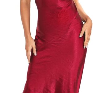|                                                     Women's One Shoulder Satin Silk Backless Split Wrap Dress