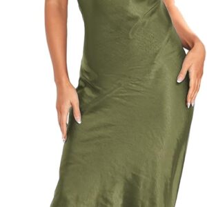 |                                                     SITELUOYG Women's Elegant Mock Halter Neck Party Dress Sleeveless Satin Silk …