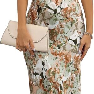 |                                                     Women's Silk Satin Maxi Skirts Stretchy High Waist