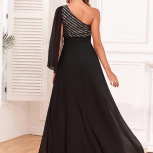 YHHOWEP Women’s Sparkly Sequin Dress Glitter One Shoulder Split Bridesmaid Cocktail Formal Evening Gowns Ball Dresses