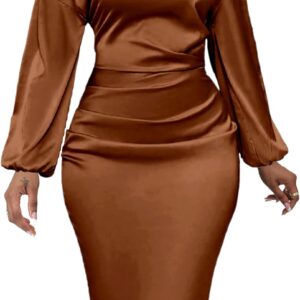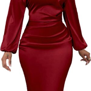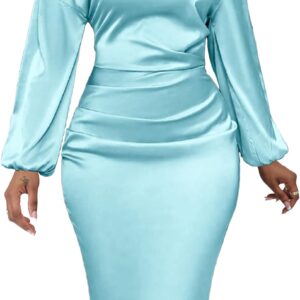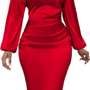 Yiershu Women’s Sexy Fall Off Shoulder Bodycon Dress Elegant Long Sleeve Formal Cocktail Party Midi Maxi Dresses