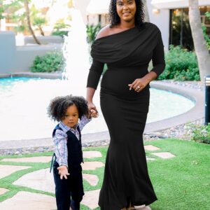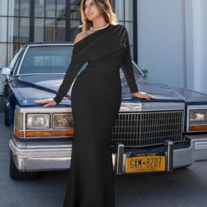 YMDUCH Women’s Sexy Elegant Long Sleeve Off Shoulder Bodycon Long Evening Formal Dress
