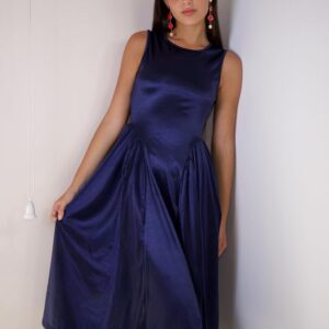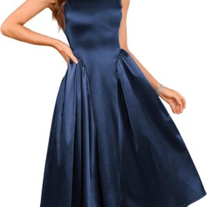 ZAFUL Satin Formal Dress for Women Sleeveless A Line Flowy Wedding Guest Dress Boat Neck Prom Cocktail Party Midi Dresses
